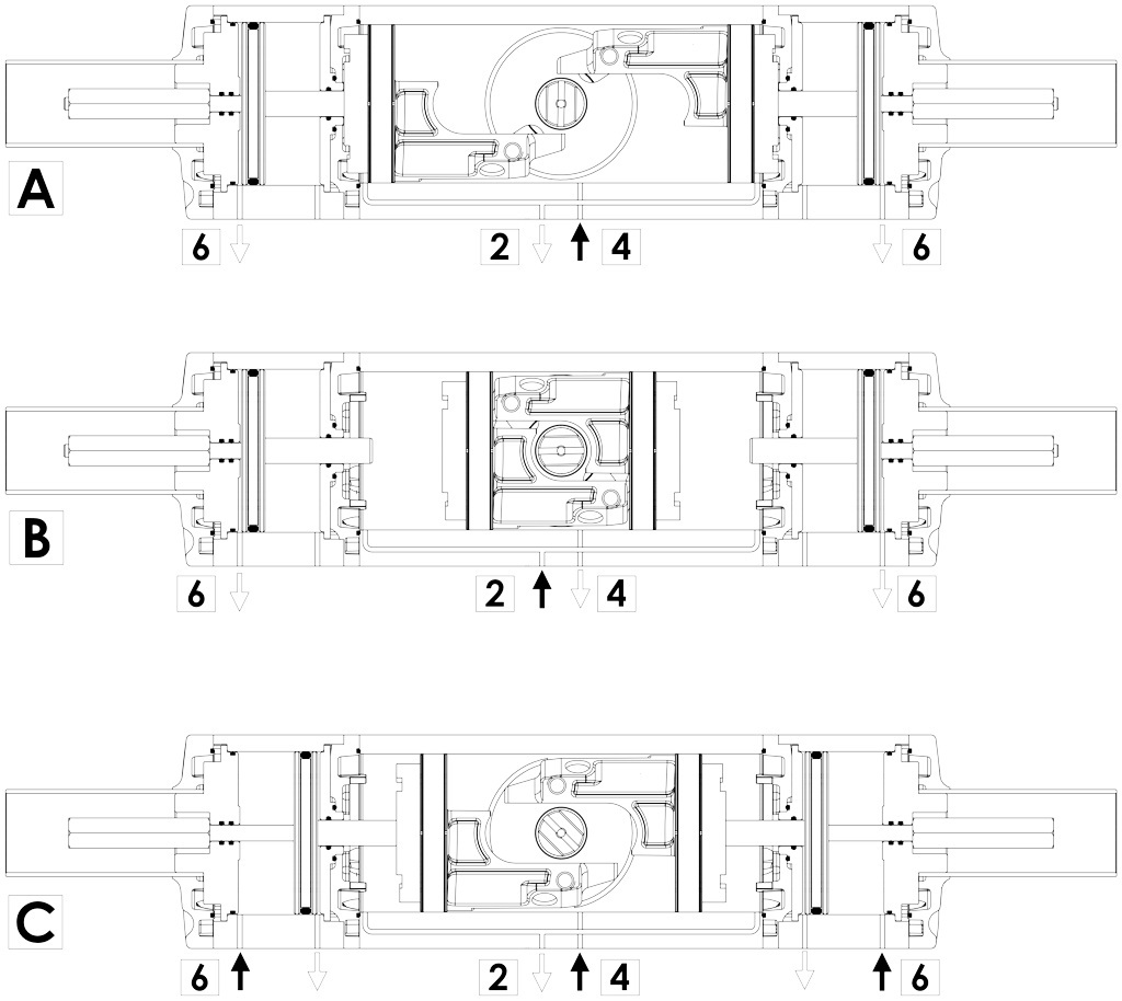 CONDIZIONI DI ESERCIZIO Temperatura: da -20°C a +80°C Pressione nominale: 5,6 bar; massima di esercizio 8,4 bar Fluido di alimentazione: aria compressa filtrata secca non necessariamente lubrificata. In caso di lubrificazione usare olio non detergente, compatibile con NBR.