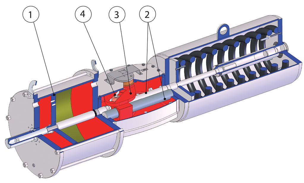 Per la versione semplice effetto il momento torcente di ritorno (mancanza di alimentazione nell’attuatore) dipende solo dall’azione della molla ed è indipendente dalla pressione di alimentazione.