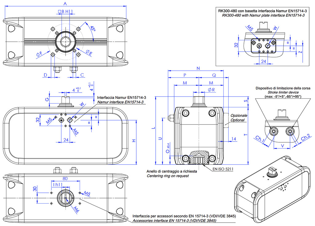 • Flangia d’attacco: EN ISO 5211: F03 - F04 - F05 - F07 - F10 - F12.