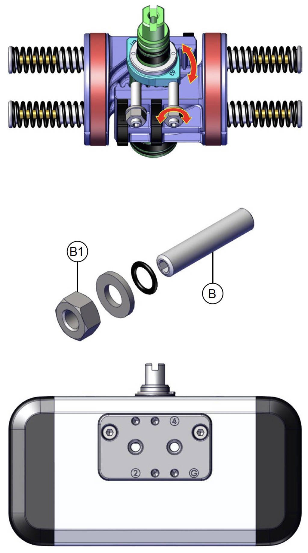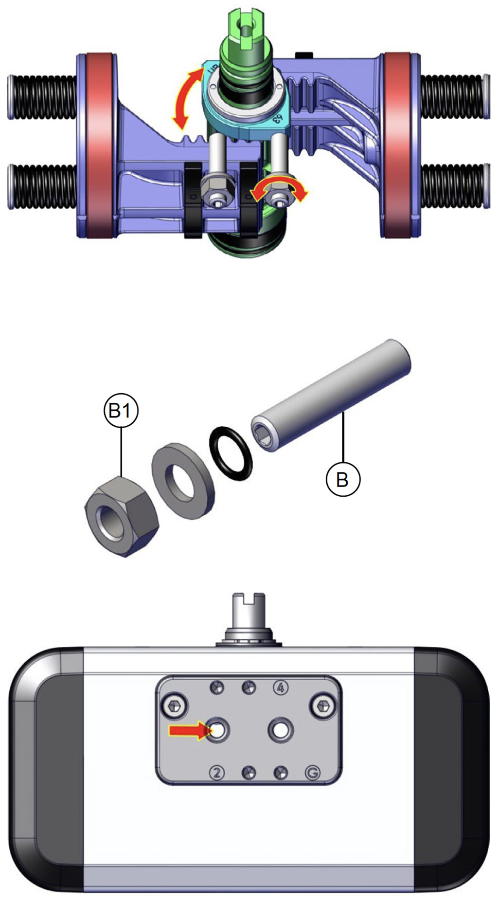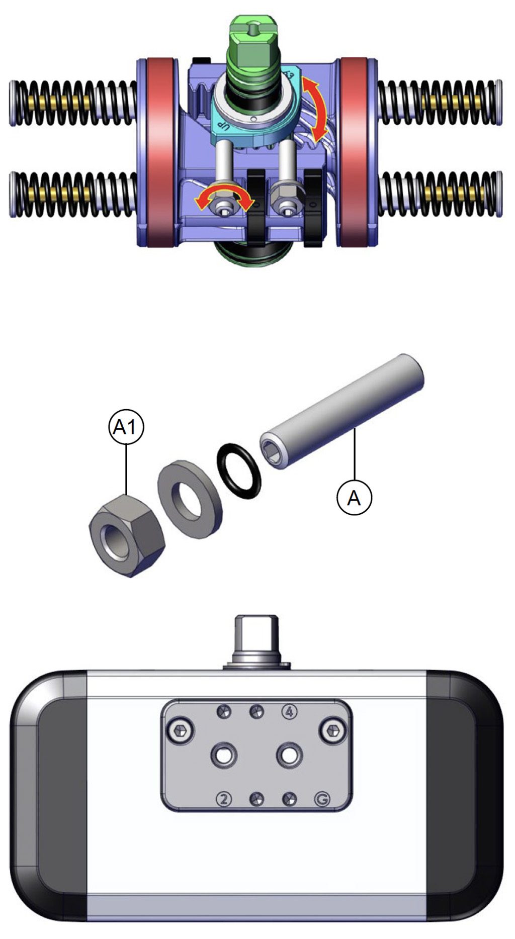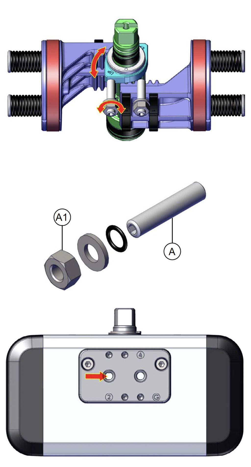 A) Assicurarsi che non ci sia aria in pressione nell’attuatore (in nessuna delle due camere).